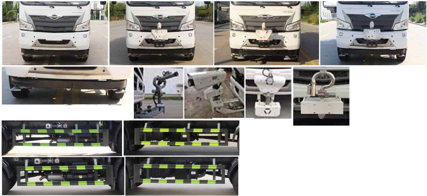 領航80米霧炮車_福田領航ES7抑塵車_領航60米霧炮車_湖北盈通專用汽車有限公司,該車用途為抑塵降霾.主要裝置為罐體及噴霧裝置;罐體總容量:10.76立方米;罐體有效容積:10.2方米;罐體外形尺寸(×長軸×短軸)(mm):3400×2450×1700;側、后防護材料均為:Q235碳鋼,連接方式均為:螺栓連接,后部防護截面尺寸(mm):120×50,后部防護離地高度(mm):490;ABS型號為CM4XL-4S/4M,生產廠家為廣州瑞立科密汽車電子股份有限公司.隨底盤選裝燃油箱位置,選裝車輛前部鴨嘴裝置.選裝電子水炮裝置樣式,選裝前部不帶電子水炮;當前部不帶電子水炮時,車長為8680mm,7750mm;當前部安裝電子水炮時,車長為9180mm,8250mm,車輛前伸500mm.隨底盤選裝限速裝置,限速88km/h.僅采用底盤3950mm,4500mm軸距改裝.